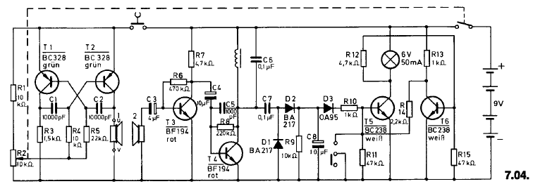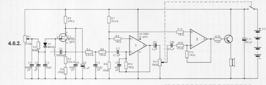 Schakeling 7.02 is een van de leukste schakelingen. Een peil apparaat voor televisie toestellen. Dit is de opnemer. Helaas voor de opspoorders van de huidige LCD televisies, want hierbij zal het apparaat niet meer werken.