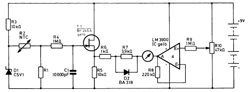 - Temperatuur sensor. Hiervoor wordt en gewone diode gebruikt.