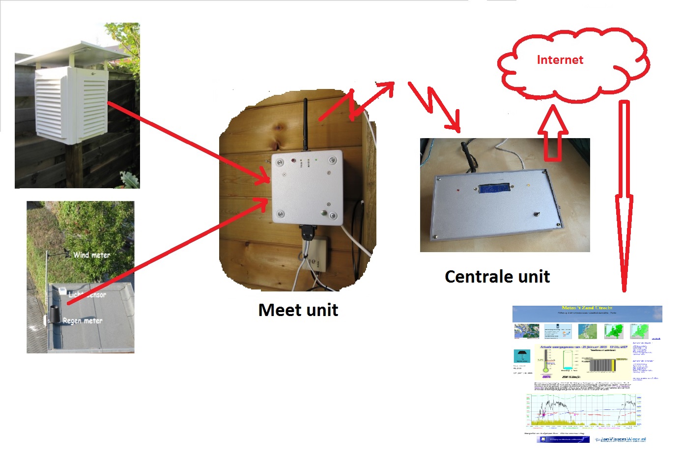 weerstation systeem bestaat uit een meet unit, waar alle data uit de thermohut en de meters op het dak gelogd worden. Hierin