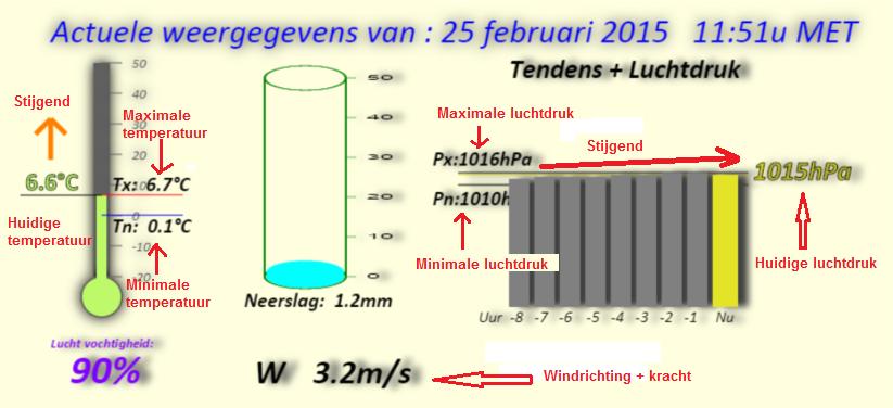 actuele gegevens staat de thermometer links. De actuele temperatuur